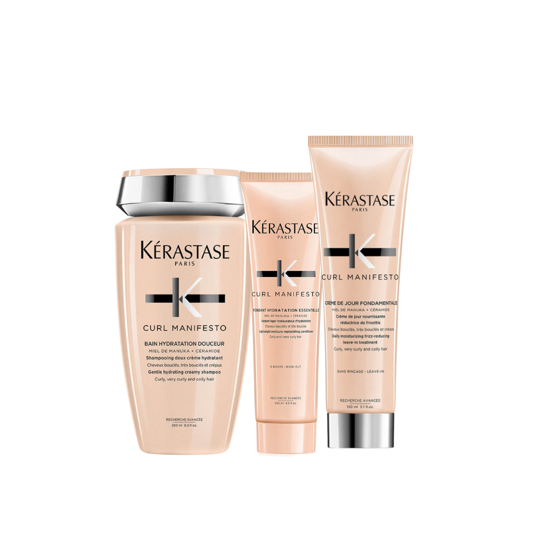 La línea Curl Manifesto de Kérastase está especialmente formulada para cuidar, hidratar y definir el cabello rizado, ondulado o muy rizado. Gracias a su combinación de Miel de Manuka y Ceramidas, ofrece la máxima hidratación, fuerza y elasticidad, dejando los rizos más definidos, suaves y llenos de vida, sin apelmazar.