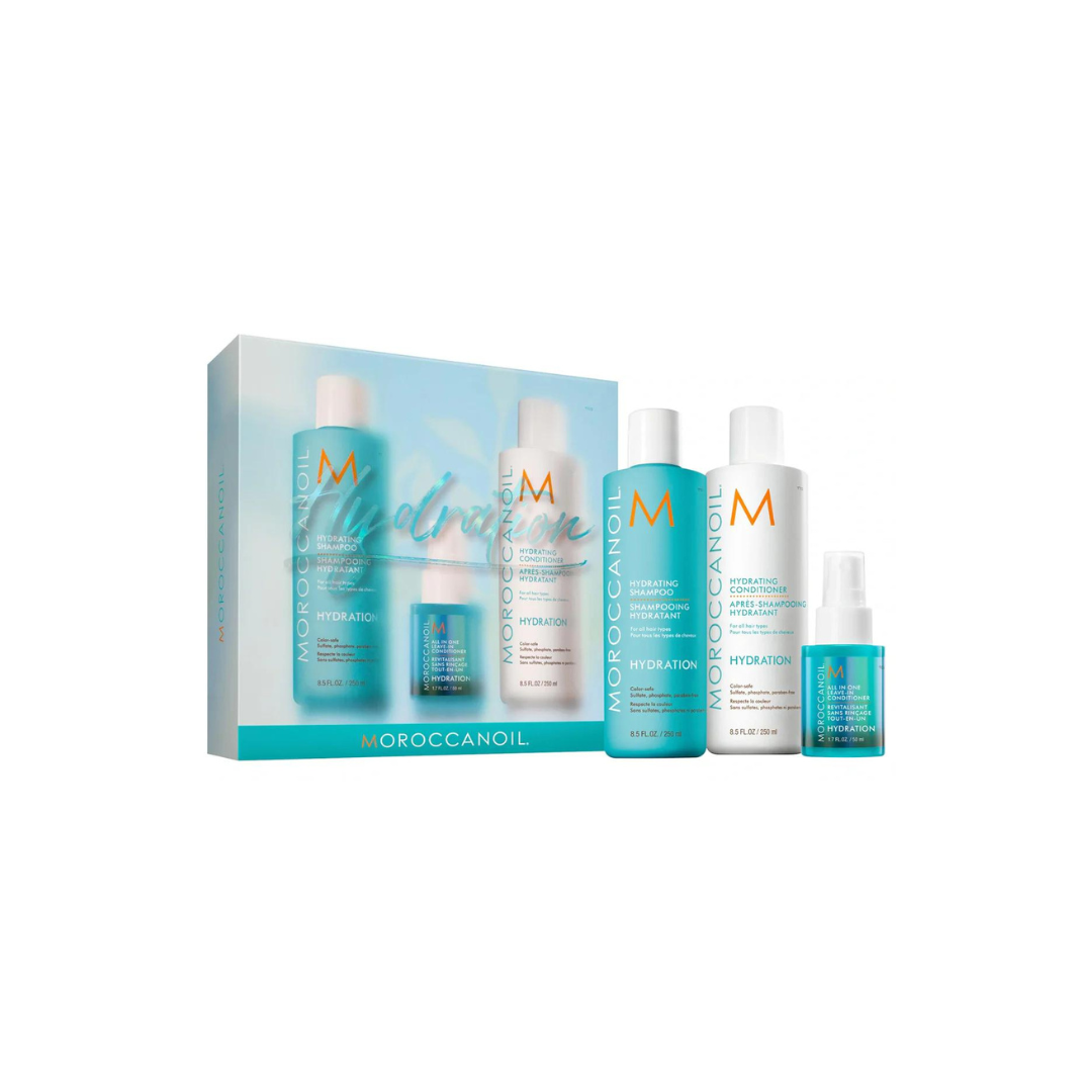Descubre el equilibrio perfecto entre hidratación y nutrición con el Set Hidratación Moroccanoil®, diseñado para revitalizar tu cabello y brindarle suavidad, brillo y protección duradera.
